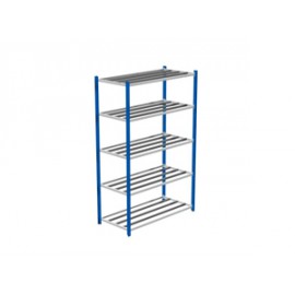 • Montants en acier profilé et de 5 tablettes tubulaires en acier finition galvanisée réglables en hauteur tous les 4 cm